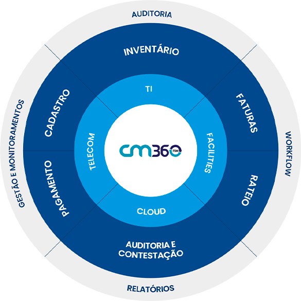 Integrado a inteligência artificial e ao processamento de linguagem natural, o CM360 é uma plataforma completa que simplifica, gerencia e otimiza os gastos em TI, Telecom, Cloud e Facilities. Com uma visão holística das despesas e do uso dos serviços, possibilita reduções de custos entre 30% e 50%, aumento da eficiência e previsibilidade financeira.